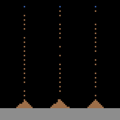 This is a model of how sand particles interact with each other. In this environment, all sand particles try to move down if any of the following four rules apply. The four rules are: