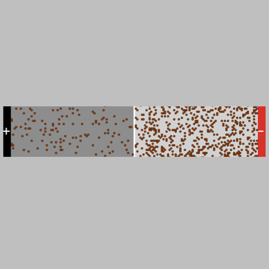 This is a simplified, microscopic model of electrical conduction in a series circuit with two resistors (wires). It is based on Drude's free electron theory. The primary purpose of the model is to illustrate how electric current in one wire gets to be equal to electric current in the other even when the wires have different resistances: higher number of electrons moving slowly (towards the battery positive) in one wire, and fewer electrons moving faster in the other wire.