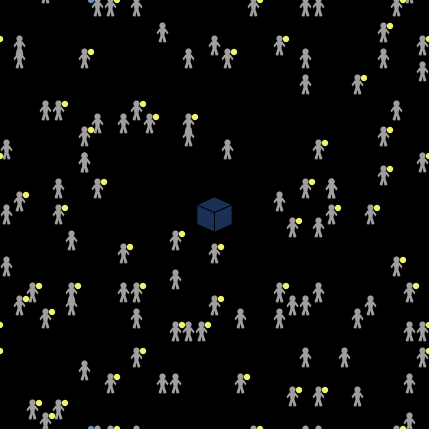 People's expectations are represented by little symbols next to their head. Blue represents "a", and yellow represents "b". Dots indicate a positive expectation. Xs indicate a negative expectation.