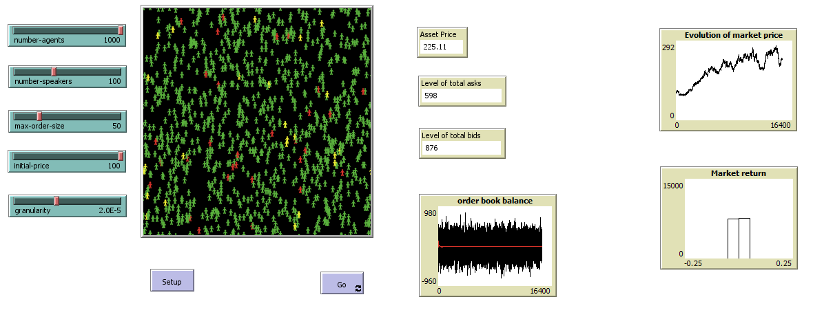 • GO button allows the model to continuously simulate the market